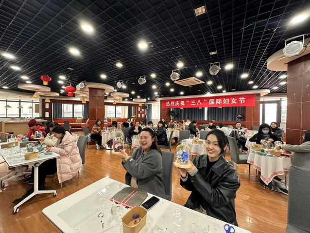 3 月 11 日下午,yl23411永利集团官网登录工会于多功能厅开展了 “跟党奋进新征程 巾帼打造永恒魅力” 永生花小夜灯手作活动,庆祝国际三八妇女节的到来